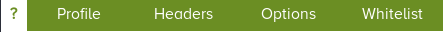 There are several tabs in the Chameleon UI: about (?), Profile, Headers, Options, and Whitelist.